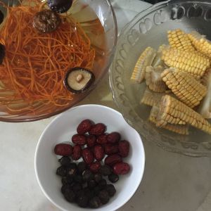虫草花和香菇泡水,玉米切开,红枣桂圆适量