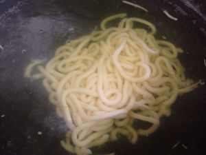 水沸腾后放入乌冬煮几分钟,直至乌冬面散开即可,盛入碗中