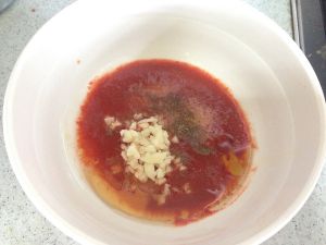 把酸汤酱、盐、麻油、花椒面、胡椒面、大蒜适量放入碗中加水待用。