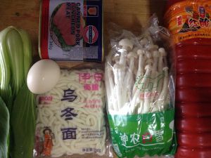 另起锅烧开水(水量盖过面条即可),下入乌冬面煮熟,最后再放入油菜稍烫,然后捞出面条和油菜放入碗中,倒入刚才煮好的酸汤即可。(也可以直接在酸汤中煮面条,但分开煮感觉汤汁更清爽)
