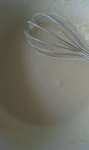 3、面粉和淀粉慢慢加入牛奶(或水),搅拌成糊,静置15分钟;切记不要太稀~