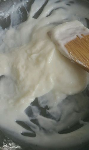 1、把牛奶、炼乳、玉米淀粉、糖一次混合搅拌均匀,倒入锅内,小火加热,不停搅拌至奶糊浓稠,关火。 (PS:一定要注意观察奶糊的稀稠度,否则会影响口感。我第一次做,关火迟了,奶糊有点稠。)