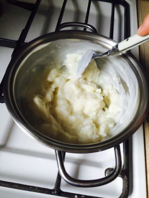 第五步:加热至粘稠马上关火,变成糊状不停搅拌