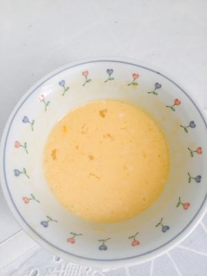一个鸡蛋打入小碗,加适量水和面粉搅拌均匀