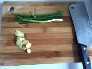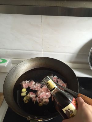 锅中放入冷水,排骨,姜片,倒入一勺量料酒