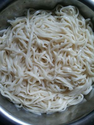 开水下锅煮面,不要煮过头。捞出过冷水,防止后面炒面过程中面太粘。