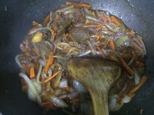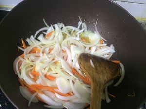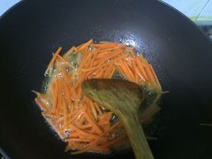 放油,把胡萝卜炒一下,因为我不喜欢脆的,所以都是先放胡萝卜。
