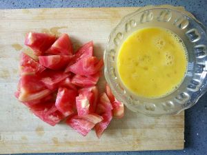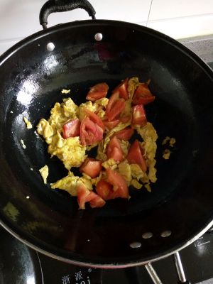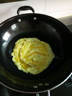 油热,倒蛋,边倒边搅,成鸡蛋碎。