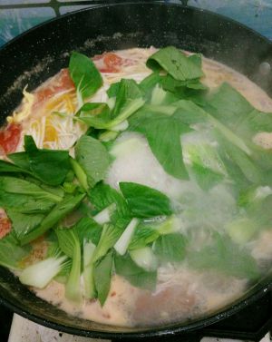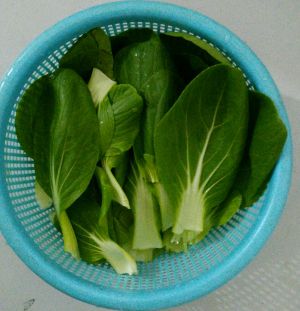面煮到八分熟的时候放一小把青菜,加盐,味精,和葱花