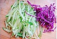 蕨根粉提前用温水泡软,着急的话可以用热水泡,泡好后过一下冷水即可