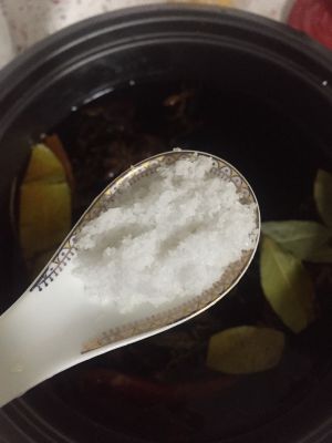 一次加足盐是怕泡一晚后蛋太咸就不好吃了,所以加了两勺,入味一夜,不怕蛋过咸!我早上尝了口煮蛋水很淡所以加了一勺再煮,这样咸味就会渗入,香味经过一晚已经足够,早上煮是为了调咸淡的同时热的茶叶蛋也更美味!亲们可以根据自己的喜爱来调咸淡!提醒,一次性放足盐再侵泡一夜小心太咸!第一次传菜单,话多了点怕自己表达的不够清楚