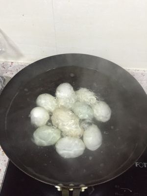 鸭蛋冷水中火煮15分钟,然后捞起放冷水里晾凉