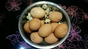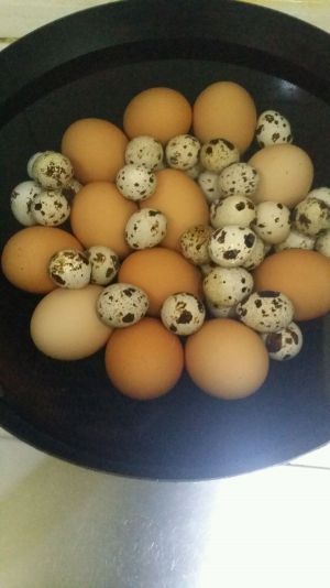 鸡蛋、鹌鹑蛋过清水洗净蛋皮,冷水下锅,开锅后煮6分钟