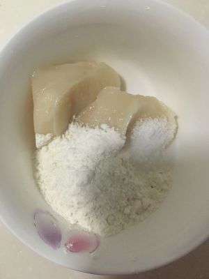 中粉加温水揉成光滑面团醒半小时左右,如果是隔天早上进行后面的步骤的话稍微揉一下就好了,冷藏醒面之后揉两下就很光滑了