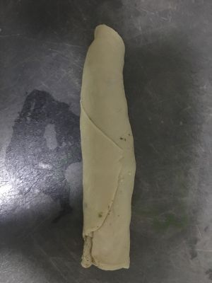 面块卷成条末尾捏紧。
