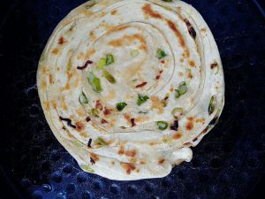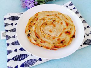 把压好的薄饼放在电饼铛上,不用刷油了。薄的3分钟即可,厚点的5分钟。