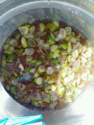 热锅凉油,葱白放进去炒香,但不要炒糊。