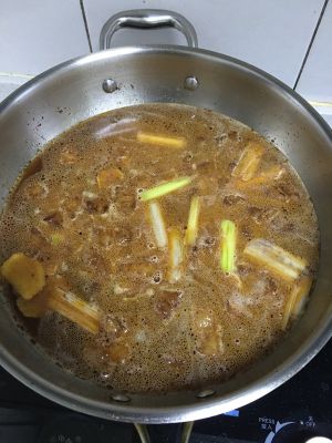 加入适量开水、洋葱丝少许;小火慢炖40分钟。(注意每隔10分钟查看加水,防止烧干。)