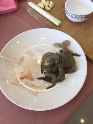 虾仁剥皮,用蛋清干淀粉盐料酒抓匀,备用。