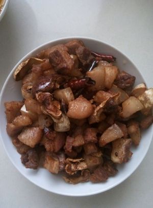 五花肉洗净,焯水,然后切小块下锅煸炒!