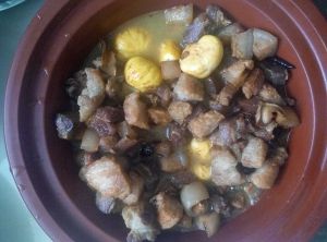 大火煮开后放入辣椒和蒜,转小火慢炖半小时。