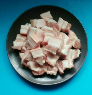 准备食材,五花肉洗净切块备用