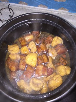 炖30分钟的时候放入油豆腐,继续炖(炖的时候可开盖把肉翻动一下,让肉均匀受热入味)
