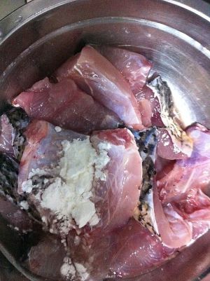 鱼肉加入盐和淀粉腌一下,备用