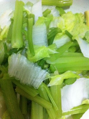 将白菜、芹菜用水焯熟,装入盆中,备用