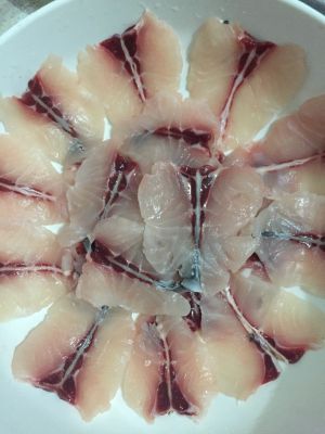 巴沙鱼切成薄片;