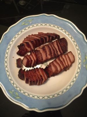 切块上桌咯 还可以把刚调的酱汁入锅炒一下 淋在叉烧上 想想都流口水了