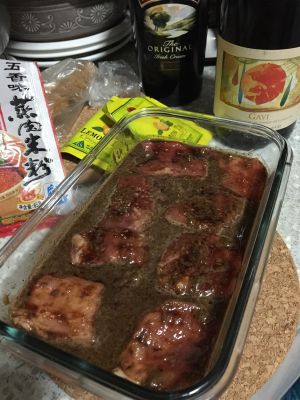 首选梅花肉,因为不会全瘦吃起来口感不会柴。如果喜欢那种流着汁的半肥瘦叉烧,可以选偏瘦的五花肉,也很好吃。 因为是直接生烤,不能焯水,所以一定要做好去腥这步。先用冷水浸泡一到两小时,中途换水,把血水泡出来。泡好之后沥干水分,用厨房纸吸干表面水分。