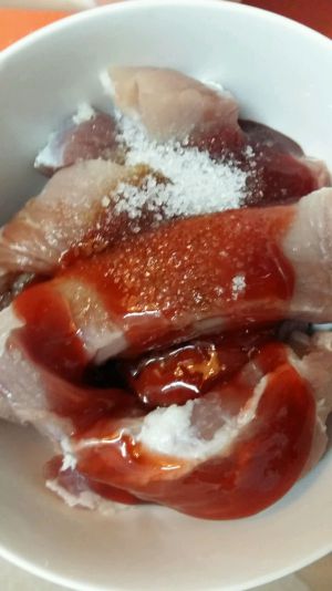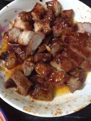 瘦肉加叉烧酱.白糖少许.酱油少许.油少许 腌制一夜