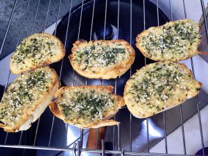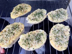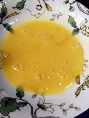 先蘸蛋液,再撒花椒粉,抹蒜泥,撒欧芹末