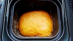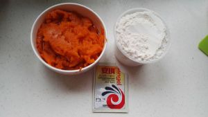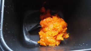 润唐馒头面包机内桶洗净,放入搅拌棒,加入南瓜泥270g。
