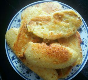 鸡蛋液加一点点盐打散,白馒头切片在鸡蛋液里滚一下均匀沾满。