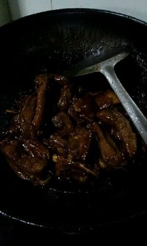 捞出,换砂锅,加油下排骨,加红烧酱油上色后下调料翻炒