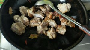 在热油放入排骨(先把血水泡出),小火将肥肉部分煎至去油