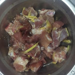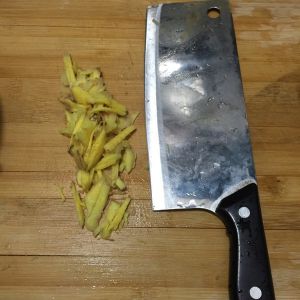 半小时后,洗净,加入姜、米酒、生抽腌制十五分钟
