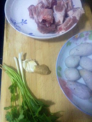 把排骨切快~土豆切快~香菇祛蒂~葱切段~蒜切片