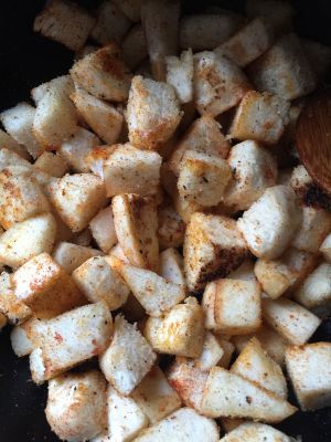 锅内放食用油,中小火不停的翻炒,中间依次加入盐巴,椒盐,辣椒粉,最后出锅时加入孜然粉