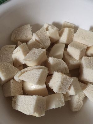 大馒头一个,把馒头切出小格子,不要切断哦。