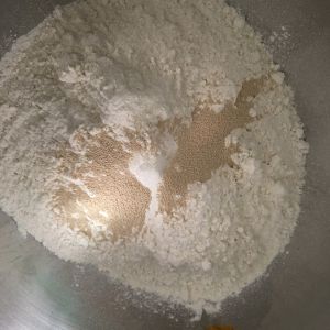 面粉200酵母粉2g盐2g白砂糖5g牛奶120 放在倍科厨师机中揉成光滑面团