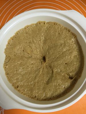盖好盖子或用保鲜膜包好进行发酵。(我是把面团盖好后放入温水中发酵,大概2小时左右,期间温水凉了要重新换温水,温水大概30度左右,注意水太热会把酵母烫死。)