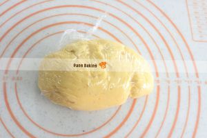 用刮刀拌成面团,再把面团用保鲜膜包裹,放进冰箱冷藏1小时左右