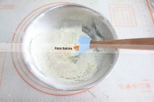 少量多次加面粉,用筷子搅拌,理想的状态是棉絮状,没有大块的湿面团,也没有干面粉的状态。太湿再加面,太干加点水。