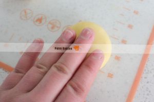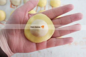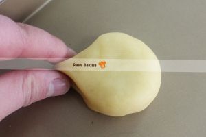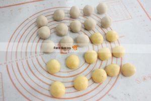 将面团揉成每个约20克,再将白豆沙揉成每个约25克的圆球状