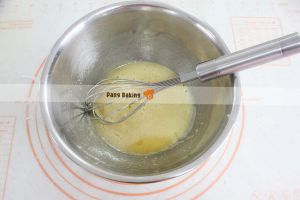 再以隔水加热的方式,用打蛋器搅打至完全融化为止。