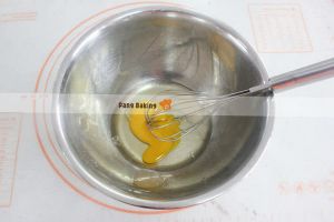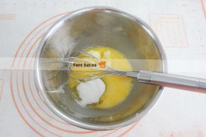 将鸡蛋放入干净的盆中,用打蛋器搅拌均匀。