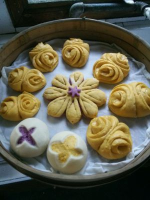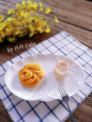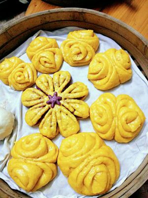 轻轻的抽出筷子,一个南瓜花卷馒头就做好了。